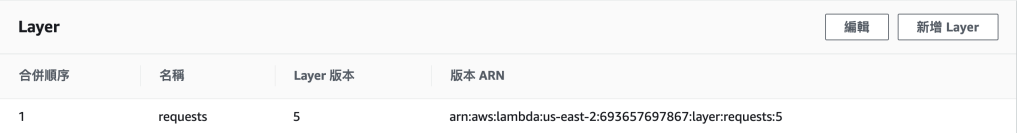 點擊新增後,就可以回到函式,會發現最底下的 Layer 已經出現剛剛所新增的 requests 了!
