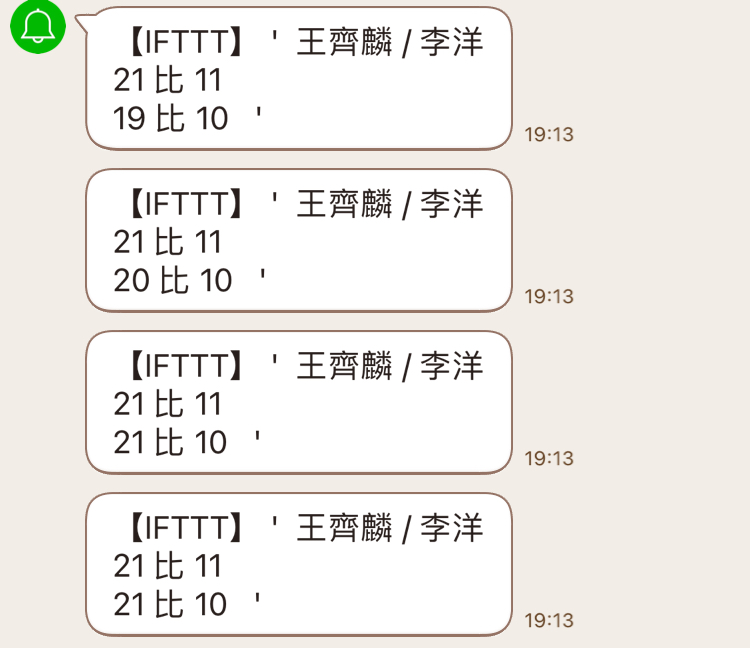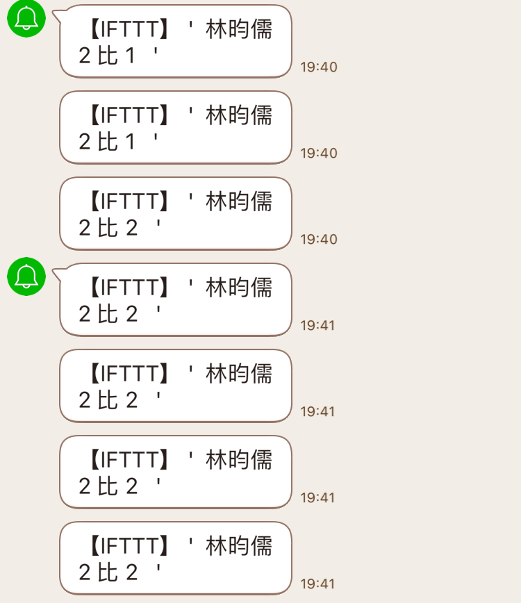最後再用 LINE Notify 的網址持續傳送訊息給我: