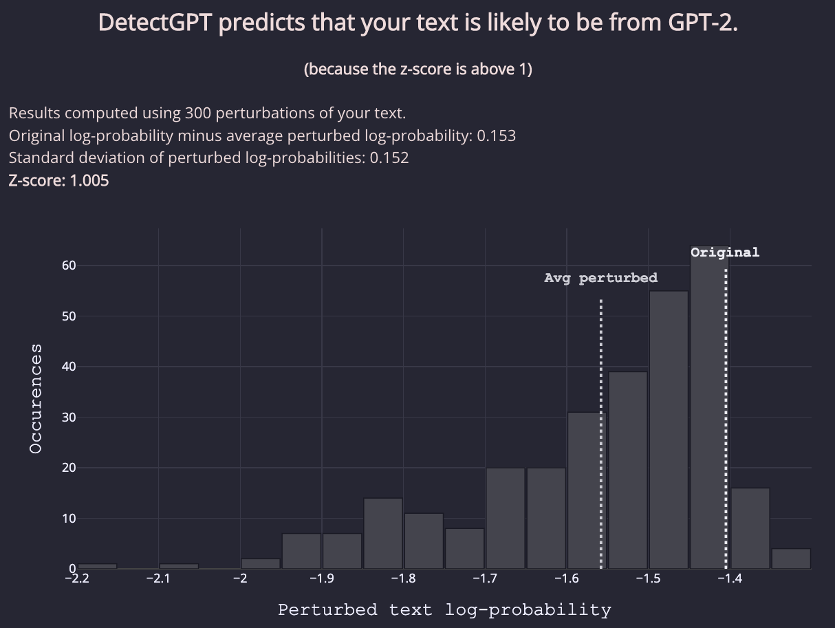 由史丹佛大學所開發,原理是基於 LLM (large language model) 產生的文本通常在對數機率 log-probability 上有特別的規律,所以可以藉此判斷文本是否由 AI 產生。